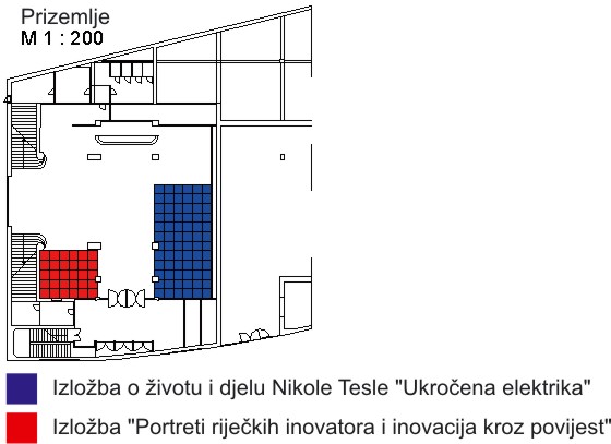 Izložba će biti postavljena u prizemlju i prvom katu Hrvatskog kulturnog doma i restoranu Hotela Neboder, prema slijedećem planu: